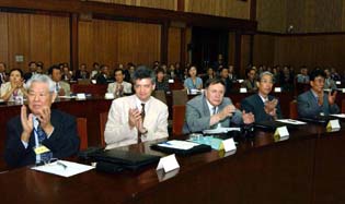 South Korean scholars were unable to attend the meeting, because Pyongyang has restricted the entry of South Koreans into North Korea as a countermeasure against Seoul’s ban on the visit of South Korea’s civilian party to North Korea on the occasion of the 10th anniversary of the late President Kim Il Sung.