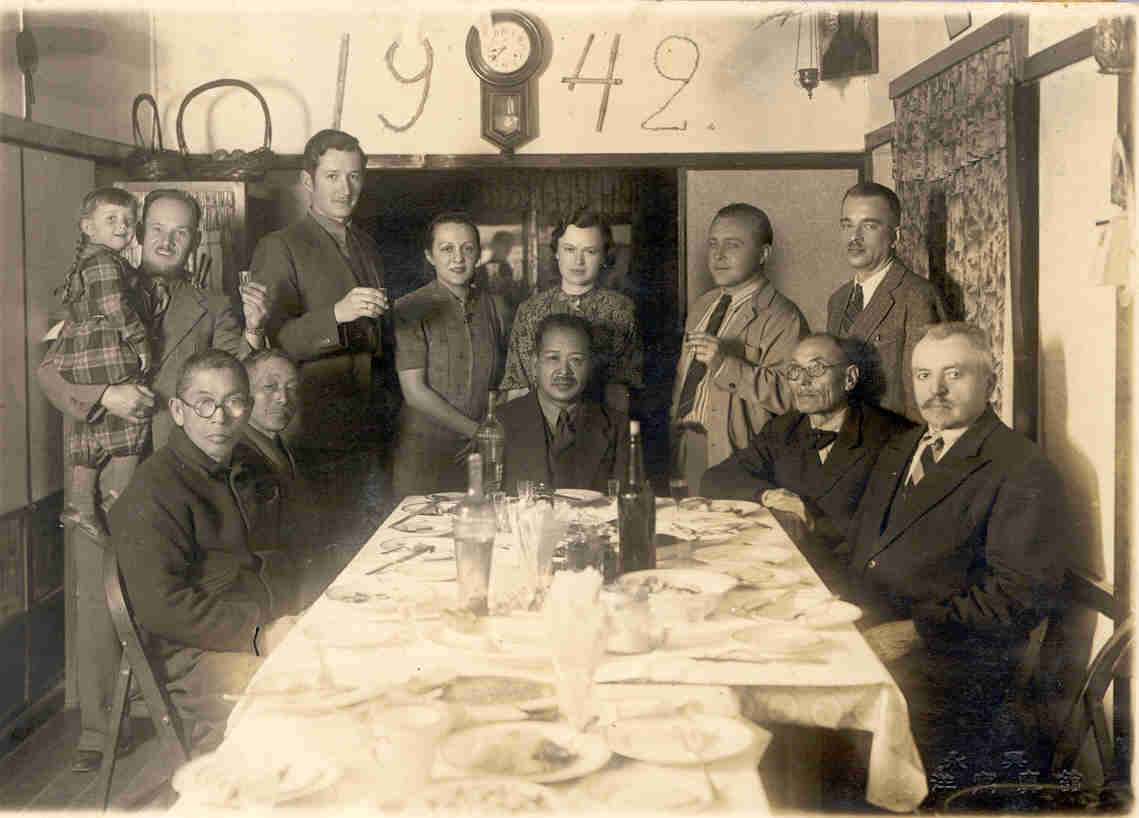 Russian and Japanese engineers at the New Year celebration (Eiko, 1942) |