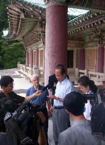 One of the main propaganda centres in the country is the "Exhibition of Friendship Between the Peoples" situated in the beautiful Myohyangsan mountains. This grandiose construction of 23 thousand square metres, "national in form and socialist in content", is an exhibition of gifts to Kim Il Song. It was established under a clear Soviet influence: an exhibition of gifts to Stalin had held once an important significance in the USSR. This exhibition is much talked about and visiting it is normal part of program for foreigners visiting North Korea.
